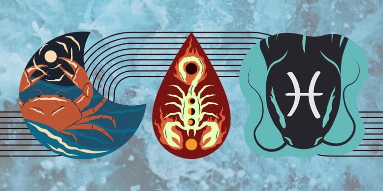 To interpret aspects like this Grand Trine, you can build a simple sentence using the planetary keywords. For example: This aspect brings sensitivity (Pisces) and remembrance of family members (Cancer) who have passed on (Scorpio). The positive side of water signs is their capacity for profound healing and emotional release—they help us come to terms with loss. If you have the Sun, Moon, or Ascendant in a water sign, take out the old photo albums and enjoy reminiscing. If you’re an air sign—Gemini, Libra, or Aquarius—you may find you can’t simply “think” your way out of the melancholy that may settle like a gentle, damp blanket.